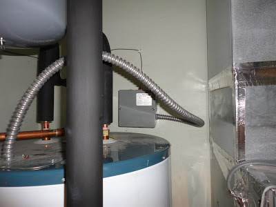 And here is the electrical box that houses the contactor that actually controls the power to the water heater:
